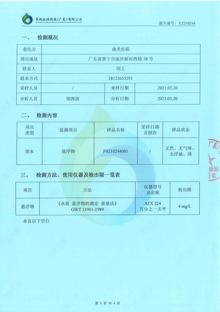下一主題:康美醫院2020年第四季度廢水檢測報告