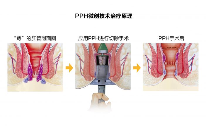 2、創傷小、恢複快。傳統手術不能完整保留肛墊,爲防止肛門狹窄還需切斷括約肌,術後每日進行換藥、熏洗,恢複過程緩慢。而PPH手術完整保留肛墊,不損傷括約肌,創口爲一次吻合,術後愈合時間短,24小時内就可以正常排便,也不需要特殊換藥、熏洗。