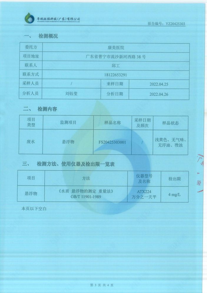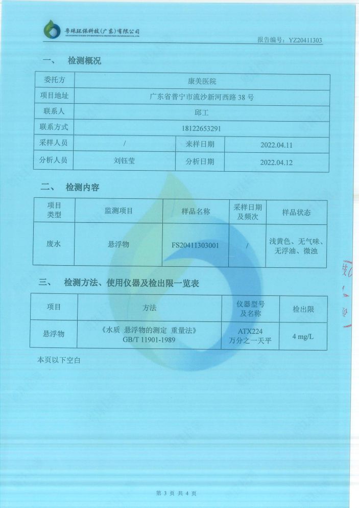 您現在的位置是:康美醫院網站 > 信息公開 > 環境監測信息 > 懸浮物2022檢測報告