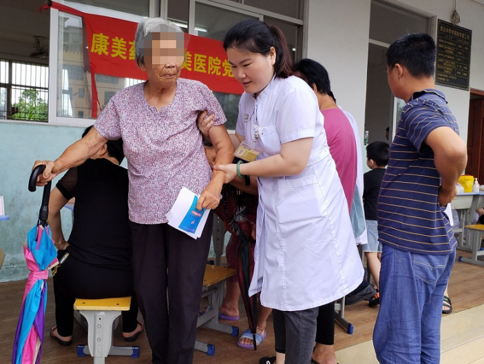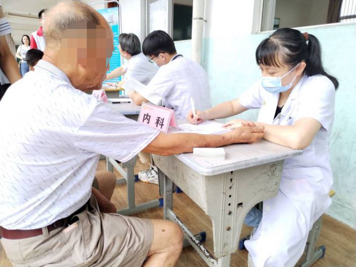 醫療隊耐心、細心、貼心地爲群衆解疑答惑、普及健康知識,開展心電圖檢查,血糖、血壓測量,眼底和視力篩查,診斷和治療疾病,免費發放藥物等,得到了村民的贊揚。活動從上午8點30分持續至中午12點,服務群衆近200人。醫院行政後勤的黨團員志願者還在活動現場提供協診服務。