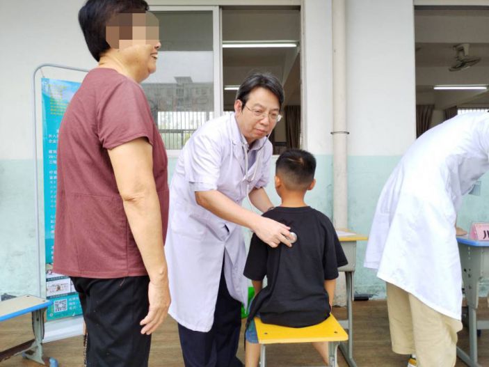 △支委黃浩銳在義診現場協診