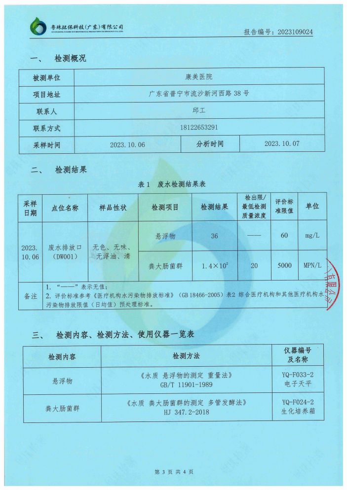 您現在的位置是:康美醫院網站 > 信息公開 > 環境監測信息 > 2023年10月、11月檢測報告