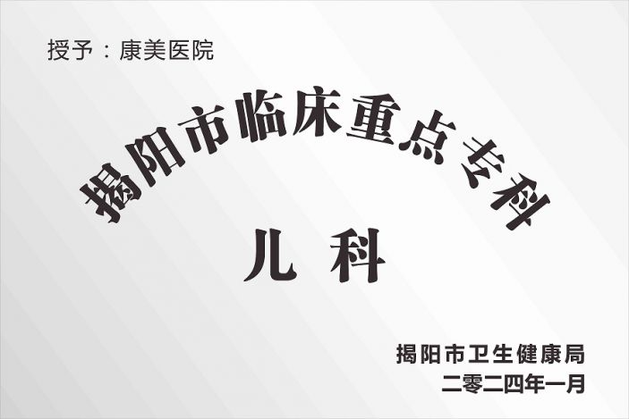 康美醫院兒科是揭陽市臨床重點專科,科室認真踐行醫院愛心、用心、貼心、責任心的“四心”服務理念,除了具備精湛的技術、擁有先進的硬件設施,能爲患兒提供優質的醫療服務外,也注重對患兒的人文關懷。科室的技術、服務、環境在群衆中擁有較高的口碑。