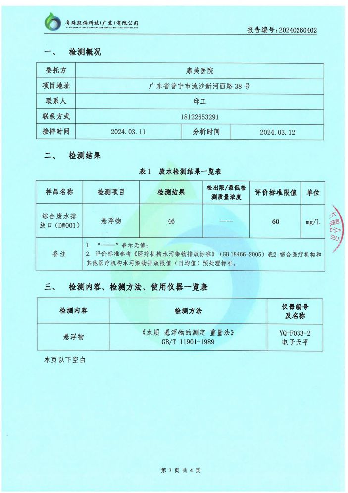 您現在的位置是:康美醫院網站 > 信息公開 > 環境監測信息 > 2024年3月檢測報告