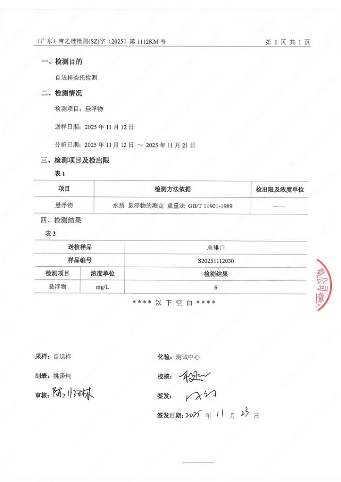 2025年11月檢測報告