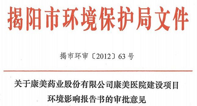 康美醫院建設項目環境影響報告書通過揭陽市環境保護局審批,揭陽環境保護局原則同意康美醫院項目建設并要求依據審批意見落實相關工作。
