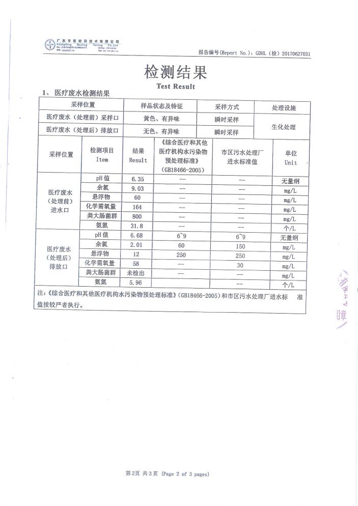 康美醫院2017年第二季度廢水檢測報告