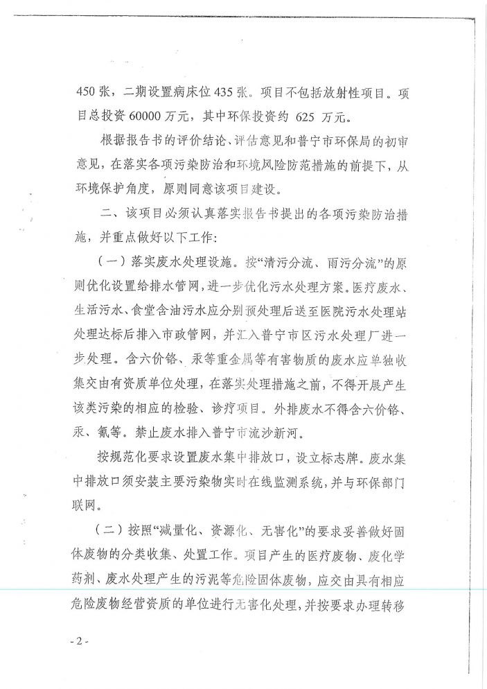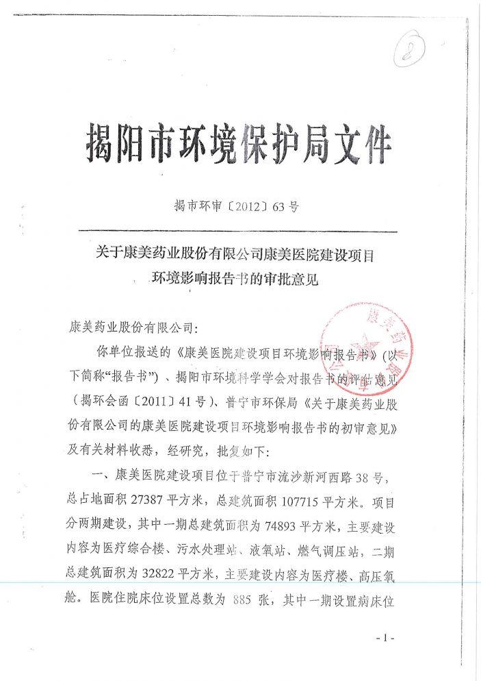 建設項目環境影響報告書批複-康美醫院(一期)環評驗收