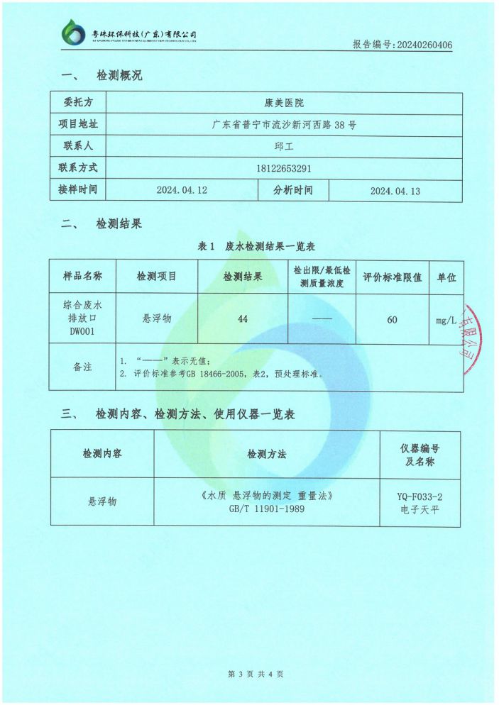 您現在的位置是:康美醫院網站 > 信息公開 > 環境監測信息 > 2024年4月檢測報告