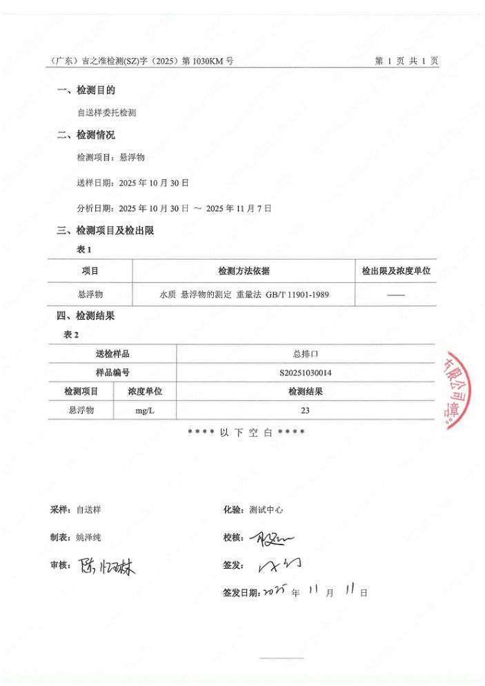2025年10月檢測報告