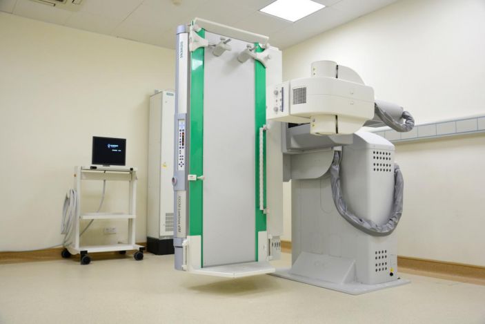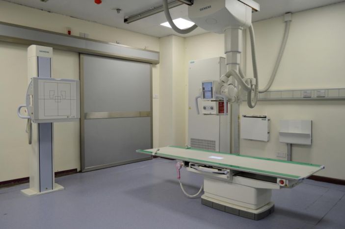 本院影像科位于門診部一樓,占據整個一樓西側,内設普放候診室、CT與MR候診室、兩個登記室、9個功能機房(現開設兩間DR室、一間數字胃腸室、一間乳腺钼靶室、一間CT室、一間MR室,備用機房三間),還有5個更衣室,VIP室,患者物品儲藏室等。本院于2013年在揭陽市率先、大批量引進德國西門子全套影像設備,包括高配1.5T超導磁共振、128層高配螺旋CT、無線DR兩台(單闆、雙闆)、800mA數字胃腸機、移動無線DR、乳腺雙靶機(钼/鎢靶)、三維C臂(術中CT)等。
