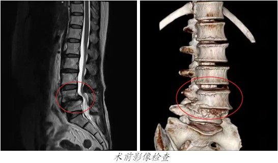 患者歐**,女,48歲,兩個多月前無明顯誘因出現腰部疼痛伴右大腿酸痛,予以康複理療及口服藥物治療,症狀稍減輕,但反複出現。來我院行腰椎MRI檢查,結果顯示第四腰椎向前滑脫,雙側椎弓峽不連,随入住我院外四科(骨科)。