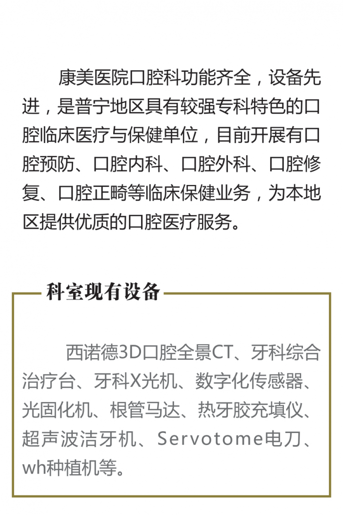 您現在的位置是:康美醫院網站 > 科室導航 > 臨床科室 > 口腔科